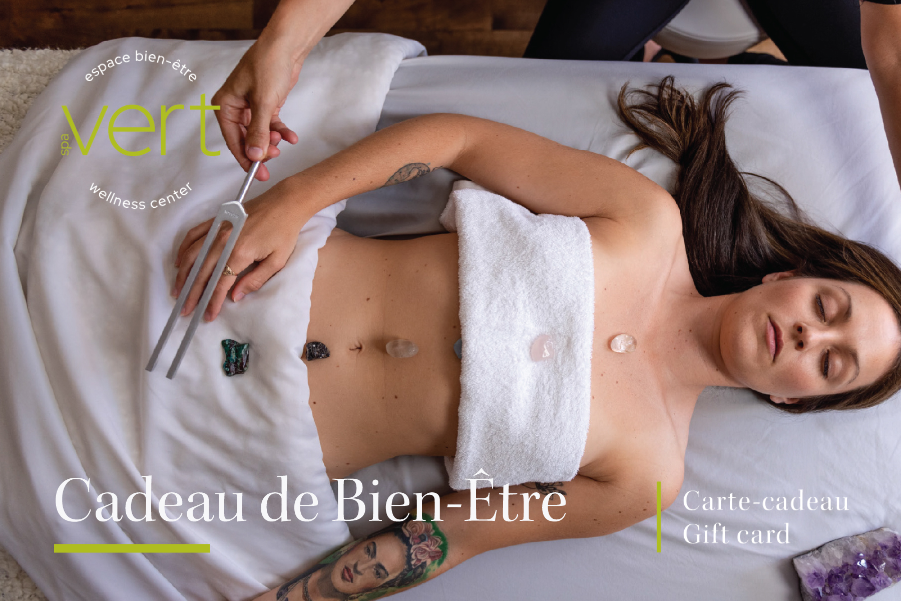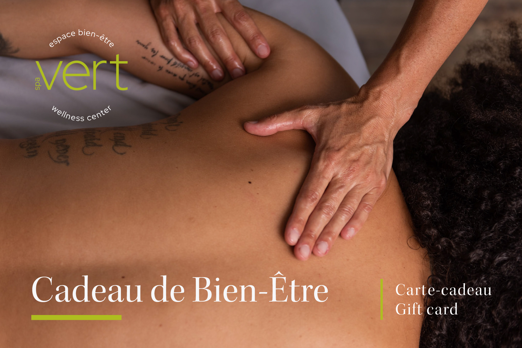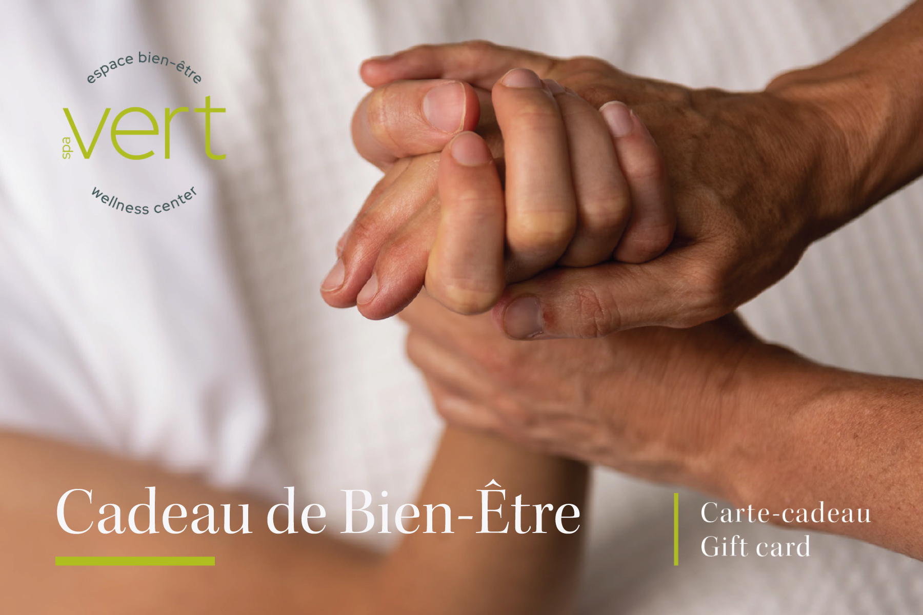 Merci d’avoir choisi une carte-cadeau Spa Vert. Si vous souhaitez de l’aide, notre équipe se fera un plaisir de vous assister — veuillez nous appeler au 514-716-8748.